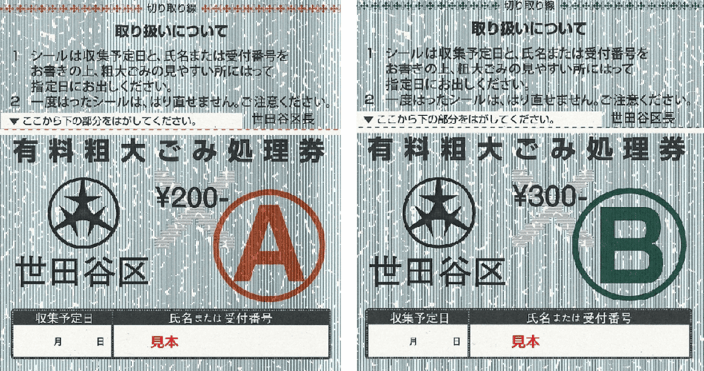 引用:有料粗大ごみ処理券について(券の種類・購入場所)|世田谷区